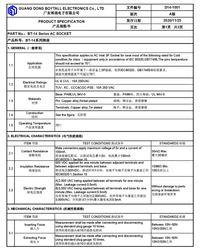 Your current location > Home > Product list- C14 Socket series - BT-14-2BA-P1P12