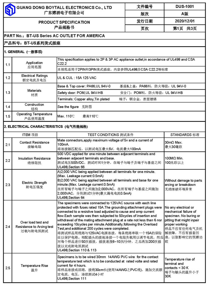 Your current location > Home > Product list- American standard socket series - BT-US2-D1(帶防護(hù)門)